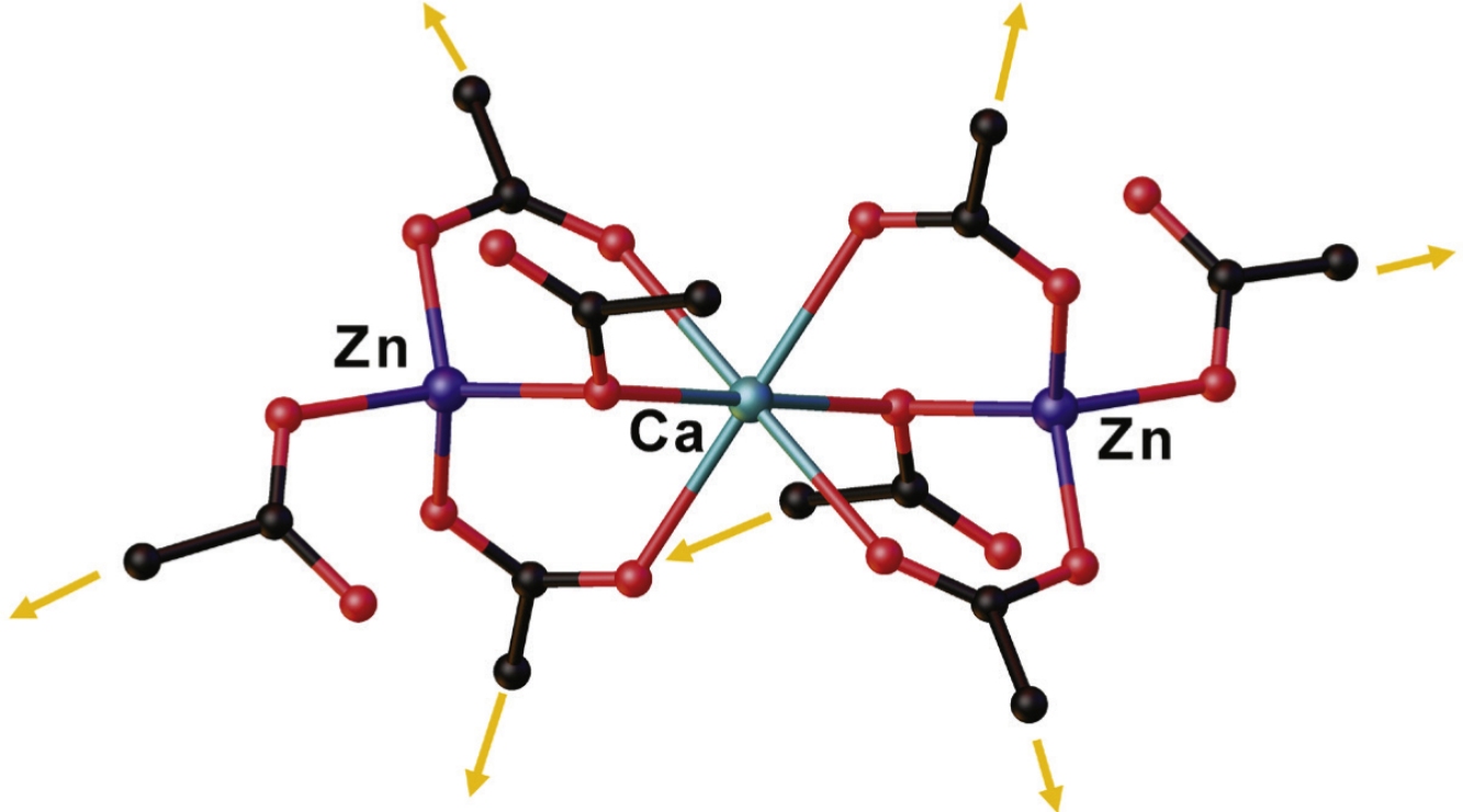 The [ZnCa(DMF)2(tda)2]n·nDMF and [Zn2Ca(fda)4]n·2n(Me2NH2) metal-organic frameworks have been obtained by the reactions of pre-synthesized [Zn2Ca(piv)6(py)2] (piv is pivalate, and py is pyridine) with 2,5-thiophenedicarboxylic (H2tda) and 2,5-furandicarboxylic (H2fda) acids, respectively. Complex [Zn2Ca(piv)6(py)2] was used as a source of secondary building units with binuclear and trinuclear cores to form porous frameworks. The structure and topology of the compounds have been analyzed in detail.