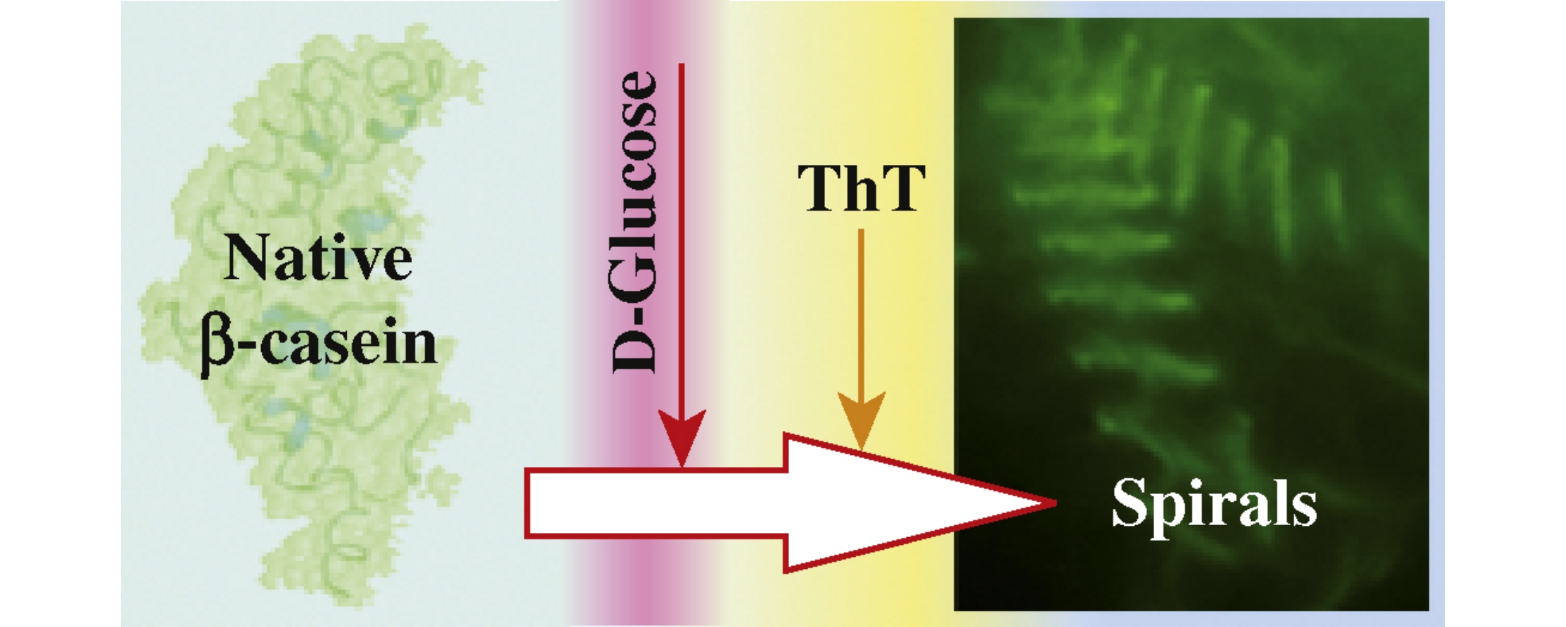 Unusual spiral-like structures in aggregates formed by β-casein glycated in a special way in the presence of thioflavin T are reported. Different glycation agents, temperature, pH, incubation time, and concentrations of protein and modifier were characterized, but only glycated by 200mm glucose for 48h at 37°C without sodium cyanoborohydride β-casein forms spiral structures in the presence of thioflavin T. Thioflavin T affects the size of particles formed by glycated β-casein and also stimulates heat-induced aggregation, indicating that the formation of unusual spiral structures is determined both by the structure of the advanced glycation end products and by the properties of the glycated protein.