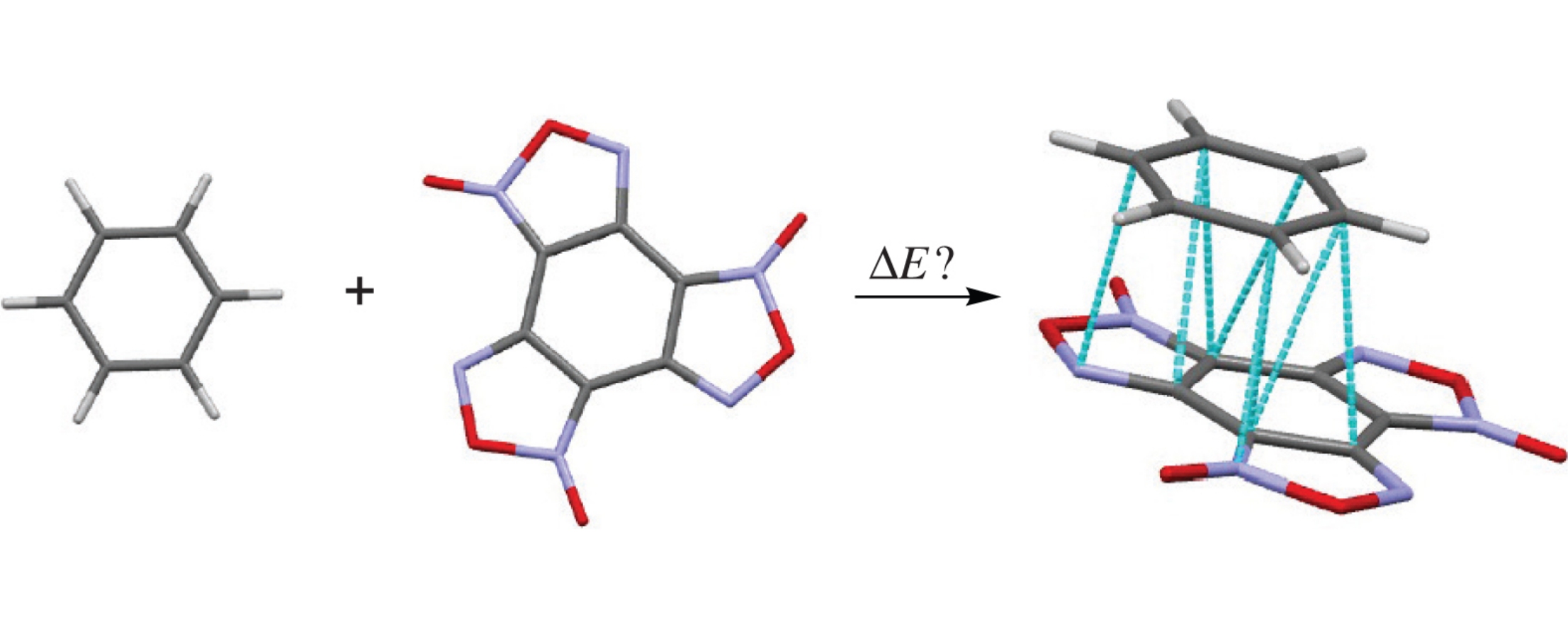 Based on a combination of quantum chemistry and atom–atom potentials methods, we developed a technique for modeling the structure and estimating the complexation energy of a binary organic complex in gas and crystal phases. The efficiency of this technique was illustrated by an example of the benzotrifuroxan–benzene molecular complex. For both phases, the same molecular binary structure (π-stacking) was obtained with a parallel arrangement of the planes of BTF and benzene molecules and complexation energies of −11.9 and −11.7kcalmol−1 for a gas phase and a crystal cluster, respectively.