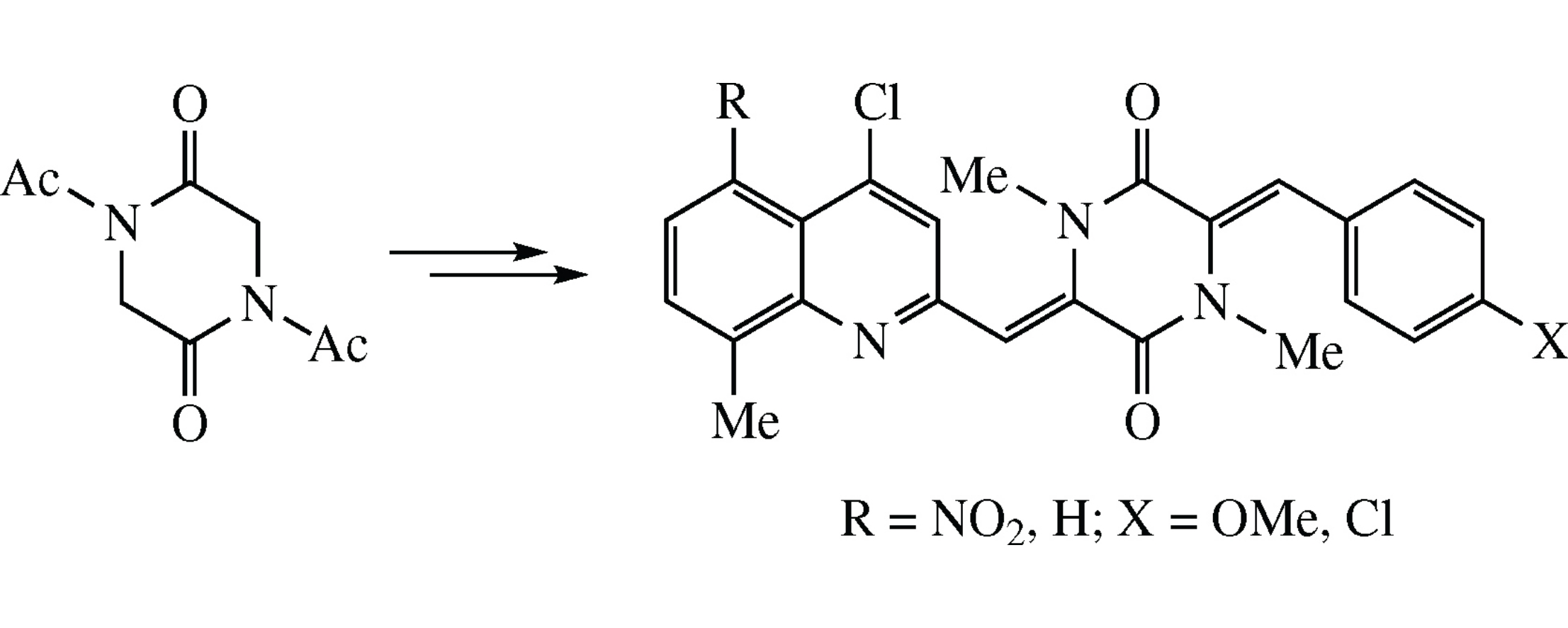 A series of new plinabulin-quinoline derivatives and their simplified analogues was obtained from N,N′-diacetyl-2,5- diketopiperazines utilizing its aldol condensation with benzaldehydes. One compound showed strong activity related to three (KB, HepG2 and Lu) cancer cell lines while two other compounds demonstrated high potencies against breast carcinoma cell line (MCF-7).