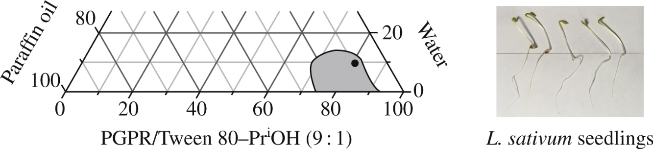 Water-in-oil microemulsion stabilized by PGPR/Tween 80 and isopropyl alcohol was prepared for encapsulation of silver nanoparticles obtained by mycosynthesis. Incorporation into the microemulsion resulted in less phytotoxicity of the particles to seed germination and seedlings development of Lepidium sativum.