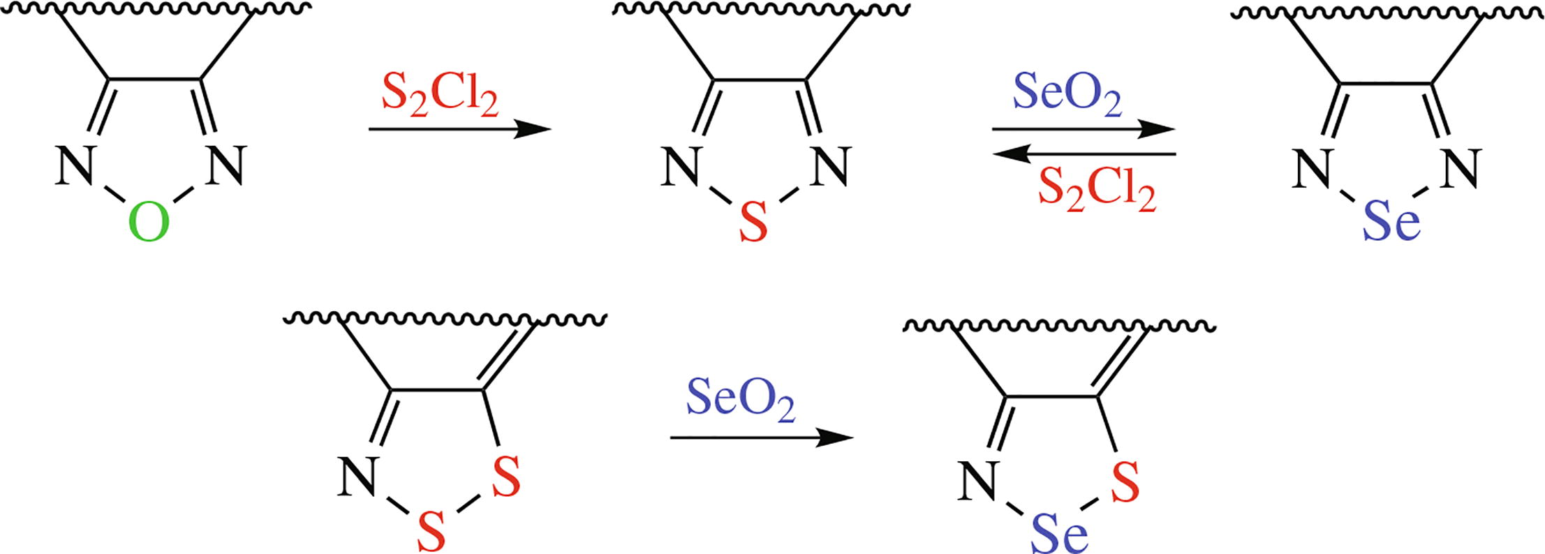 The procedures for synthesizing fused 1,2,5-chalcogenadi-azoles and 1,2,3-dithiazoles by direct exchange of one chalcogen atom for another, their scope and reaction pathways are discussed in this focus review.