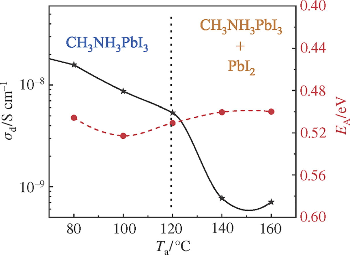 The effect of the annealing of CH3NH3PbI3 perovskite on its electrical, photoelectric and optical properties has been estimated. The annealing leads to a two-phase structure consisting of perovskite and lead iodide, whose relative concentrations depend on the annealing temperature. The formation of a PbI2 phase in a perovskite film upon heating leads to a decrease in the conductivity and photoconductivity of two-phase material, which contradicts the assumption of a decrease in recombination associated with PbI2, obtained by measuring the parameters of a solar cell.