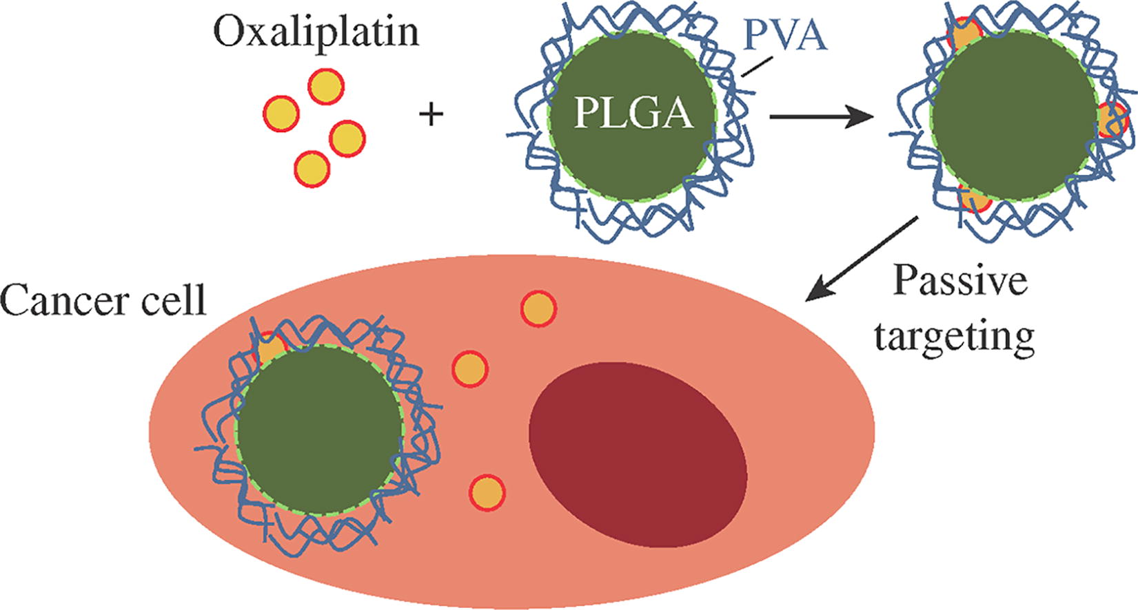Spherical nanoparticles based on the biocompatible and biodegradable poly(d,l-lactide-co-glycolide) copolymer (90 : 10) loaded with oxaliplatin were produced by nanoprecipitation. Effect of the oxaliplatin loading on structure, size and morphology of the copolymer particles is considered. The nanoformulation of oxaliplatin demonstrates enhanced cytotoxicity and selectivity in vitro against several cancer cells compared with the free drug.