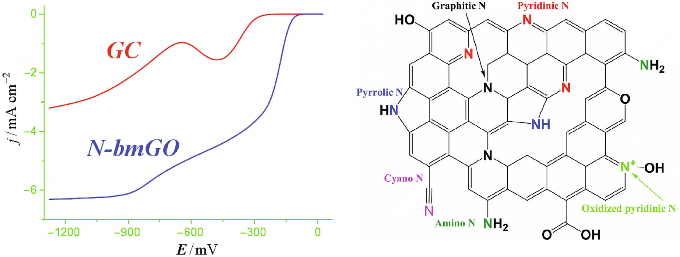 A simple strategy for the production of an efficient platinumfree electrocatalyst for the oxygen reduction reaction was demonstrated. Nitrogen-enriched carbon powder was synthesized by a solid-phase method consisting of grinding graphene oxide and melamine in a planetary ball mill without any solvents and high-temperature processing. Based on XPS and IR spectroscopy data, it was assumed that the high electrocatalytic activity of the obtained material is due to the presence of nitrogen atoms and quinone groups on its surface.