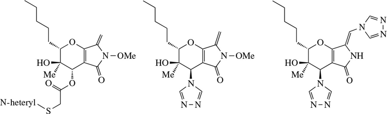New C(6)-derivatives of natural phaeosphaeride A (PPA) modified with pharmacophoric nitrogen heterocyclic groups have been synthesized. The reaction of 1,2,4-triazole with PPA mesylate produced both the product of the expected substitution of the methanesulfonate group and the PPA derivative with two 1,2,4-triazole groups: at the C(6) atom and the exocyclic C=C bond. The synthesized compounds, with the exception of those containing two 1,2,4-triazole groups, are superior in cytotoxic activity to the original phaeosphaeride and the positive control, etoposide.