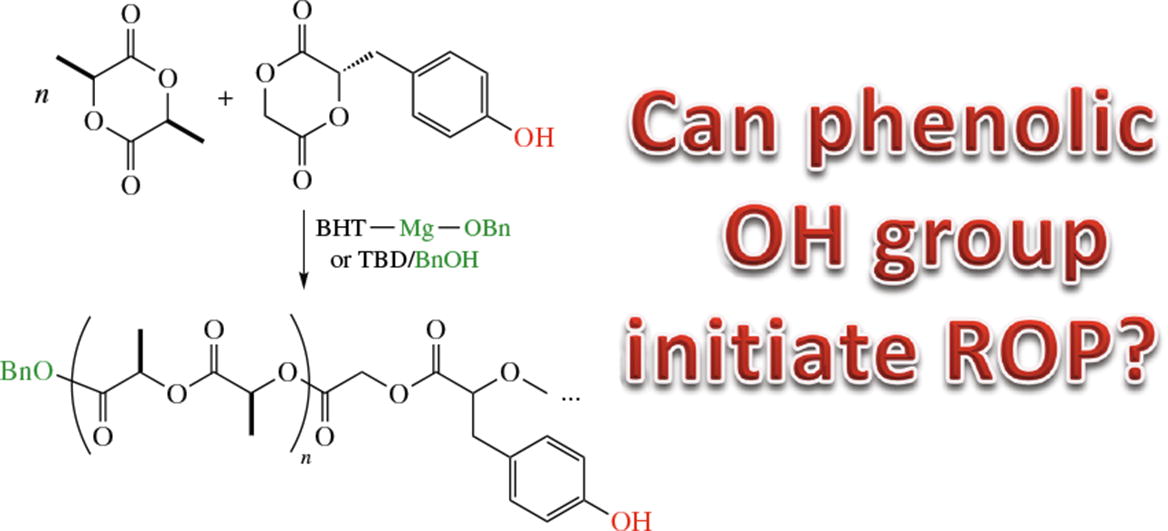 Based on tyrosine, 4-hydroxybenzylglycolide was synthesized. Its study in ring-opening copolymerization with lactides in view of the ability of the phenolic hydroxy group to initiate polymerization was performed experimentally and with DFT modeling.