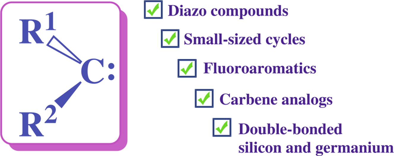 The review summarizes some of the most prominent results obtained in the laboratory headed by Academician Oleg M. Nefedov at the N. D. Zelinsky Institute of Organic Chemistry of the Russian Academy of Sciences in the field of chemistry of carbenes, their heavy analogs, and related intermediates, as well as small-sized cycles. Those include elaboration of safe methodology of cyclopropanation using diazomethane, development and extension of synthetic applications of diazoesters and other diazo compounds in the preparation of valuable chemical products, design of functionalized alkynylcyclopropanes on the basis of alkynylcarbene reactions, creation of versatile synthetic approaches to preparation of various practically useful fluoroorganic compounds on the basis of reactions of fluorocarbenes, development of synthetic applications of heavy carbene analogs and synthesis of small-sized heterocycles containing silicon and germanium atoms, analysis of mechanisms of some important reactions of carbenes, their analogs and related intermediates on the basis of physicochemical studies, direct spectroscopic studies of various labile intermediates of chemical reactions.
