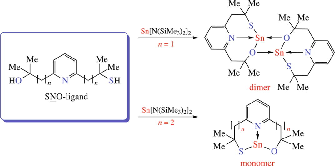 Polydentate SNO-coordinating proligands were obtained by addition of thioacetic acid to conjugated alkene, or ring-opening of thiiranes with organolithium compounds as the key stages. These SNO- and known SNS- and SOS- coordinating proligands were used for the synthesis of tetrylenes by the reaction with Lappert’s tetrylenes E[N(SiMe3)2]2 (E = Ge, Sn), giving polymeric, monomeric or dimeric species depending on the type of the ligand. The structure of stannylenes in solution was analysed by 119Sn NMR spectroscopy.