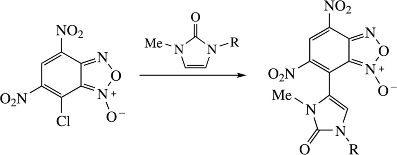 Novel hybrid compounds containing both benzofuroxan and 1H-imidazol-2(3H)-one moieties were synthesized by an SNAr reaction between 7-chloro-4,6-dinitrobenzofuroxan and imidazol-2-ones, with the only C4 regioisomer having been formed. Cytotoxic effects of parent and obtained compounds were estimated on human cancer and normal cells, while two of imidazolones showed higher cytotoxicity in relation to the M-HeLa cancer line compared to the hybrid products. In relation to the normal liver cell line Chang, the tested compounds were found to be non-toxic and can be promising for further development of anticancer agents.