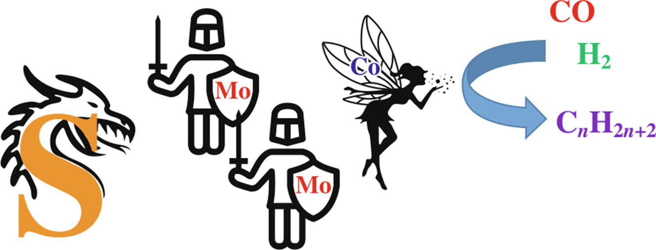 Molybdenum promotion was used to increase the resistance of a cobalt catalyst for the Fischer–Tropsch synthesis to sulfur poisoning. A series of experiments on adding 1,3,5-trithiane to synthesis gas (sulfur content of 1 ppm) showed that the Co–Mo /Al2O3 catalyst regained its initial activity after 8 h of operation. In comparison, catalysts not containing molybdenum experienced a significant irreversible loss of activity that was not recovered after stopping the addition of 1,3,5-trithiane to the feed.