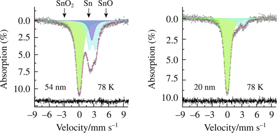 Sn–O nanoparticles were prepared by levitation-jet aerosol synthesis and found to exhibit ferromagnetic behavior. X-ray powder diffraction analysis and 119Sn Mössbauer spectroscopy confirmed these nanoparticles consist of β-Sn, SnO and SnO2 phases. The maximum specific magnetization was observed for nanoparticles containing the SnO/SnO2 interface.
