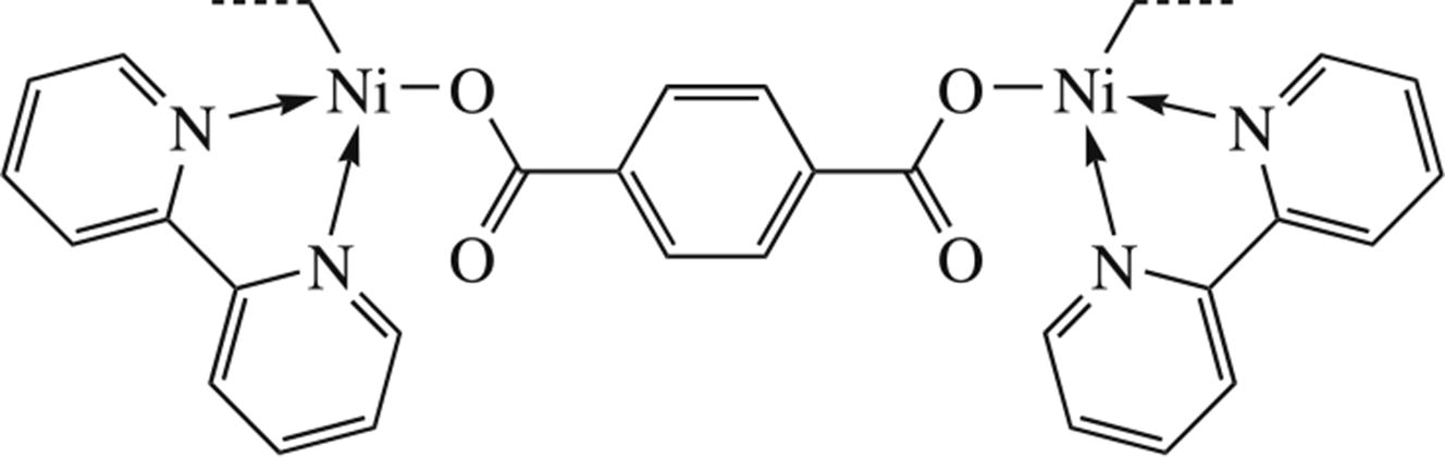 Green synthesis of nickel terephthalate complex with 2,2′-bipyridine involves the preparation of intermediate nickel terephthalate followed by complexation with 2,2′-bipyridine. The resulting substance was tested as an adsorbent for solidphase extraction of technogenic pollutants.