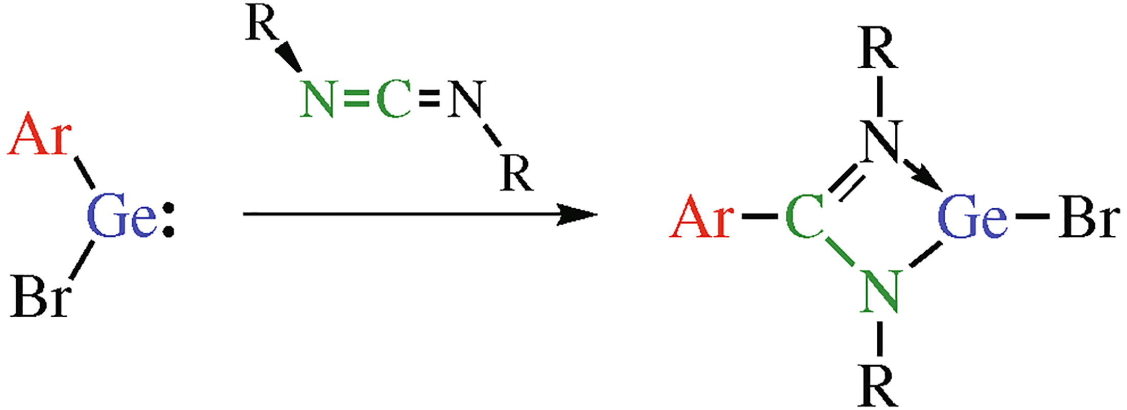 The reaction of diaryldibromodigermene Tbb(Be)Ge = Ge(Br)Tbb (Tbb = 4-But-2,6-[CH(SiMe3)2]2C6H2) with N,N'-diisopropyl-carbodiimide afforded the corresponding amidinato-supported bromogermylene via the insertion of the C=N moiety into the Ge–C(Tbb) sss-bond. The formation mechanism of the amidinato-supported bromogermylene was revealed by DFT calculations. This type of insertion reaction toward a metal–carbon bond can be interpreted in analogy to the reactivity of transition-metal complexes.