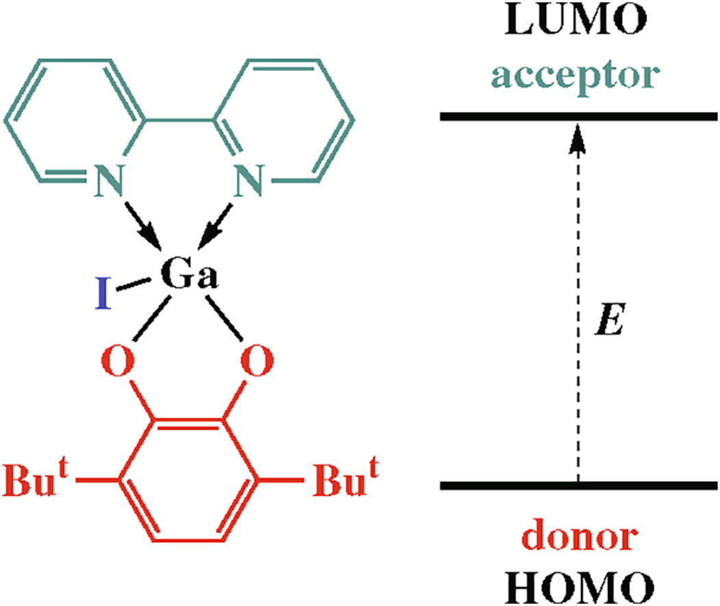 Gallium(III) catecholates with bipyridine ligand [(3,5-Cat)Ga(bipy)2]I and (3,6-Cat)GaI(bipy) (Cat is di-tert-butylcatecholate) were synthesized and characterized by single-crystal X-ray diffraction. The appearance of near-infrared ligand-to-ligand charge transfer for pentacoordinate complex was observed.