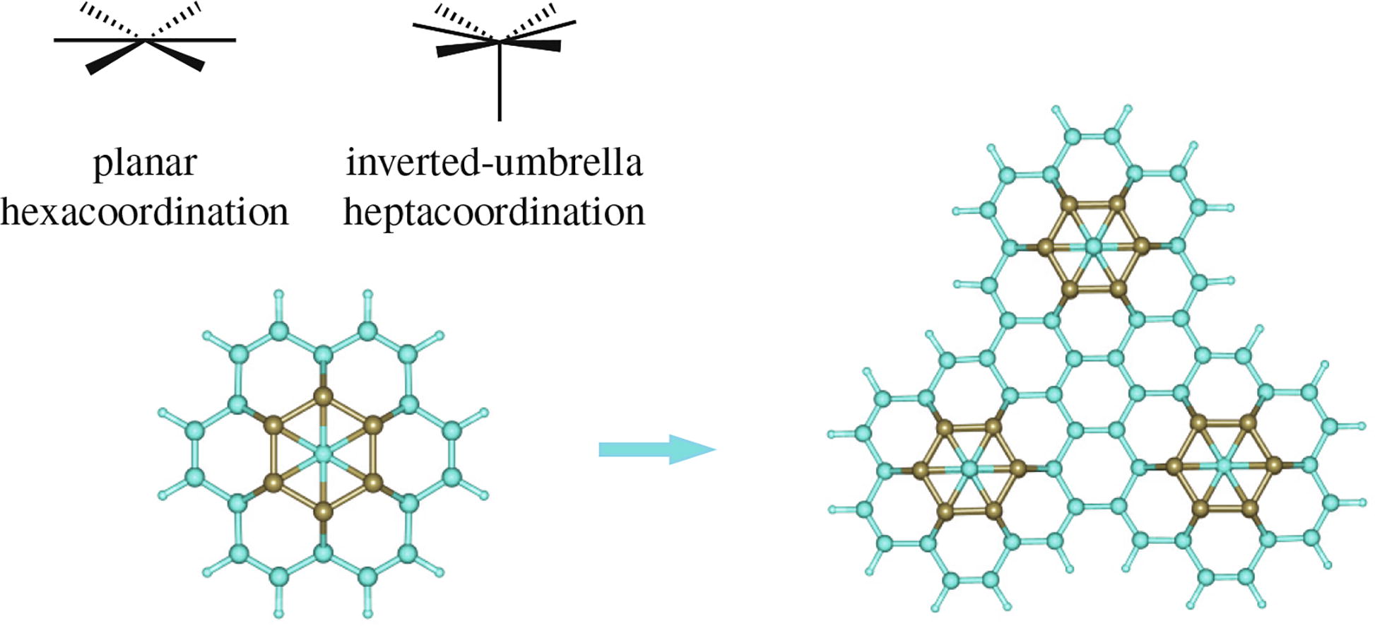 Calculations using the DFT B3LYP/6-311+G(df,2p) and wb97XD/6-311+G(df,2p) methods predict the stability of a new three-dimensional aromatic organoboron species based on the CB6 unit. Derived systems containing carbon atoms in two hypercoordination states (planar hexacoordination and inverted-umbrella heptacoordination) can be used as building blocks for constructing various stable condensed systems with many hypercoordinated carbon centers.
