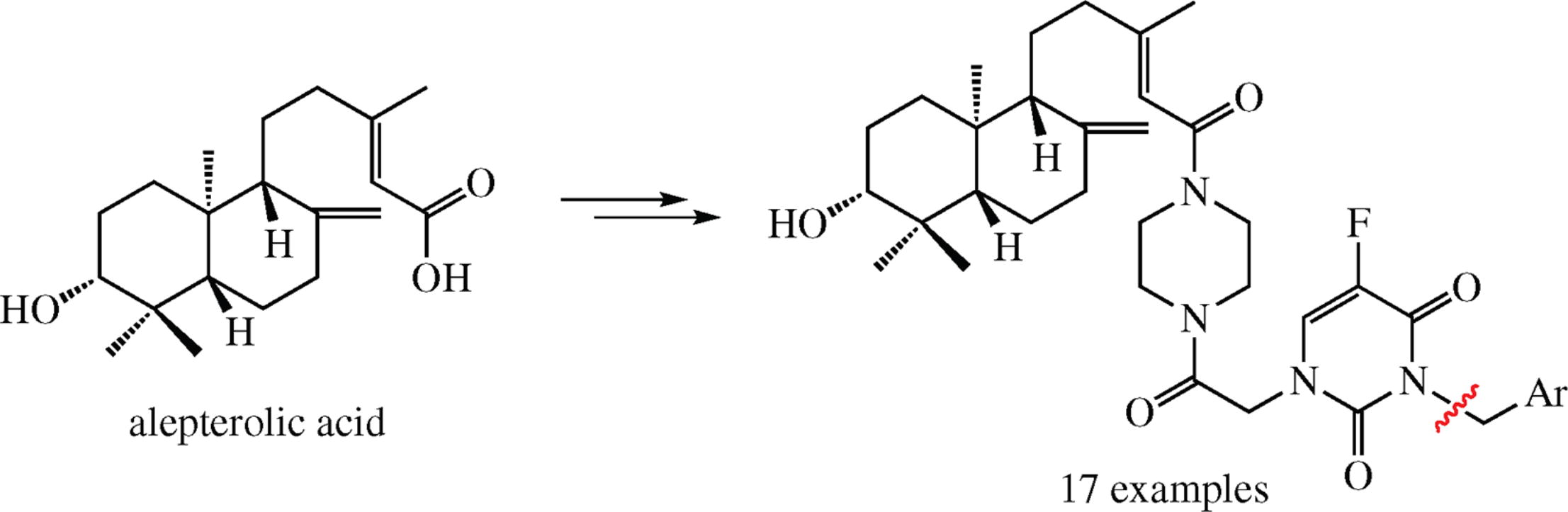 Conjugates of alepterolic acid with 5-fluorouracil derivatives have been synthesized in 70–90% yields. The cytotoxic evaluation against two human cancer cell lines, viz. MCF-7 (breast) and A549 (lung), using MTT assay showed anticancer activities of the obtained compounds.