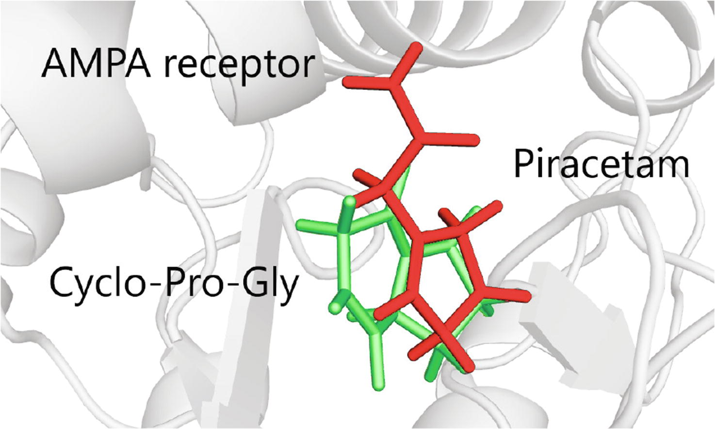 The calculations using the MM-GBSA method demonstrated that the neuropeptide cycloprolylglycine, structurally and pharmacologically resembling the classical nootropic piracetam, can bind to the piracetam site of the ligand- binding domain of the GluA3i AMPA receptor subtype with the binding energy higher than that of piracetam. Thus, together with the previous electrophysiological and biochemical data, the computational results confirm that cycloprolylglycine may be an endogenous ampakine.
