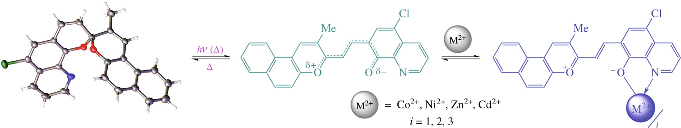A compound of the new spirobipyran-quinoline series possesses weakly pronounced photochromic properties at room temperature. Its interaction with Co2+, Ni2+, Zn2+ and Cd2+ ions leads to intensely colored complexes absorbing in the λ> 600 nm region, which is important for the study of biological objects. Up to three merocyanine molecules are capable of binding one metal ion, which is not typical for the previously studied indoline analogs.