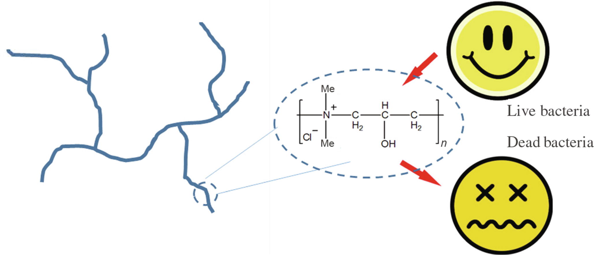Hyperbranched Kaustamin as a commercially available cationic flocculant adsorbs on a glass surface with formation of the polymer film. Kaustamin has antimicrobial effect on Gram-negative and Gram-positive bacteria, its film on glass keeps integrity and shape after absorption of water from air, which make the polymer appropriate as an antibacterial cover.
