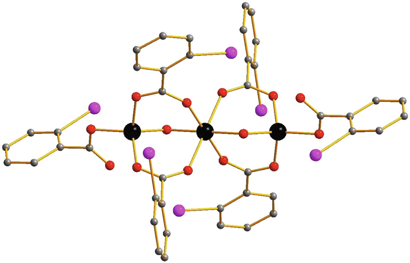 Reactions of zinc nitrate with 2-iodobenzoic acid (2-IBA) and different pyridines result in binuclear Znii carboxylate complexes [Zn2(2-IBA)4L2], where L = Py, 3-MePy and 3,5-Me2Py, while in the case of 2,4,6-Me3Py, trinuclear (2,4,6-Me3PyH)2[Zn3(2-IBA)6(OH)2] is formed.