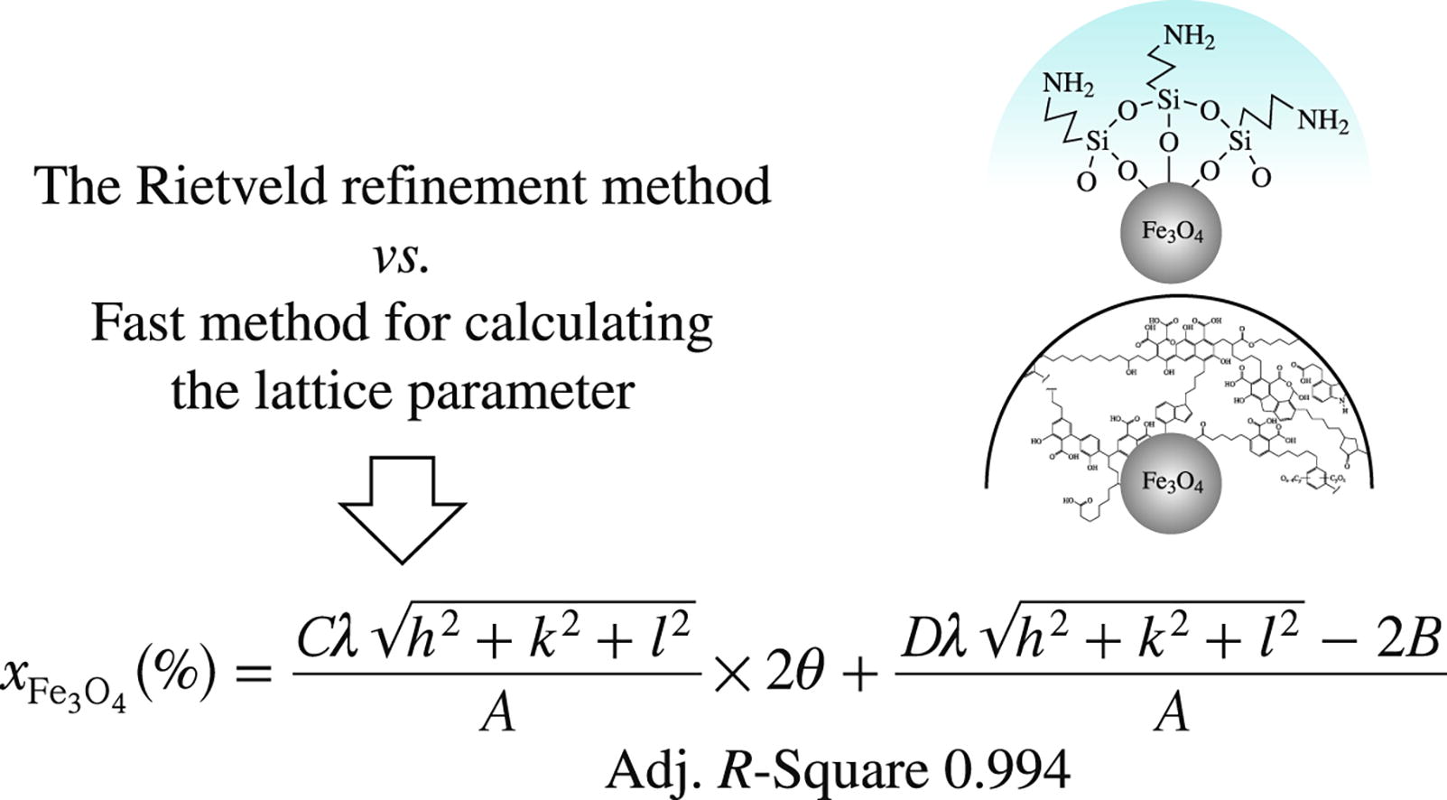A simple method was proposed for calculating the composition of nonstoichiometric or partially oxidized magnetite, based on a linear relationship between the position of the (440) peak in the X-ray diffraction pattern and the completeness of material oxidation. The results obtained were verified by the Rietveld refinement method and showed the possibility of a principal assessment of the magnetite/maghemite ratio.