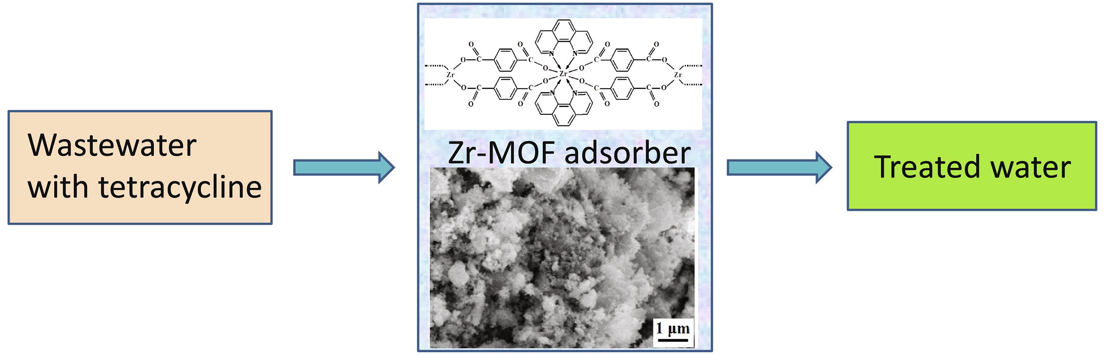 ZrIV metal–organic framework based on terephthalic acid and 1,10-phenanthroline has been prepared by solvothermal method. The product represents an effective adsorbent for solid phase extraction of tetracycline antibiotics from aqueous media.