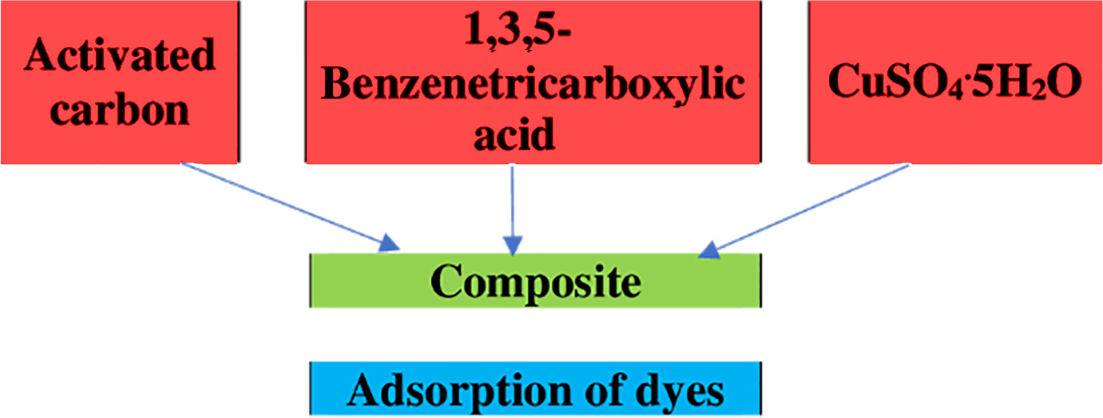 Composites containing a metal–organic framework of copper(ii) 1,3,5-benzenetricarboxylate with activated carbons from pyrolysis of the coffee bean as well as green and black tea waste have been found suitable for recovery of the organic dyes Congo red and methylene blue from their aqueous solutions with a maximum adsorption of 180 mg g–1