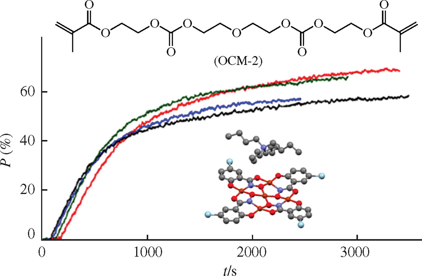 New halogen-substituted salicylhydroximate copper(II) metallacrowns were synthesized from Cu(OAc)2 and the corresponding salicylhydroxamic acids. Their molecular structure was determined by single crystal X-ray diffraction. The compounds obtained represent the first members of the metallacrown family that can be used as components of active initiators for the photopolymerization of oligo-carbonate dimethacrylate by visible light.