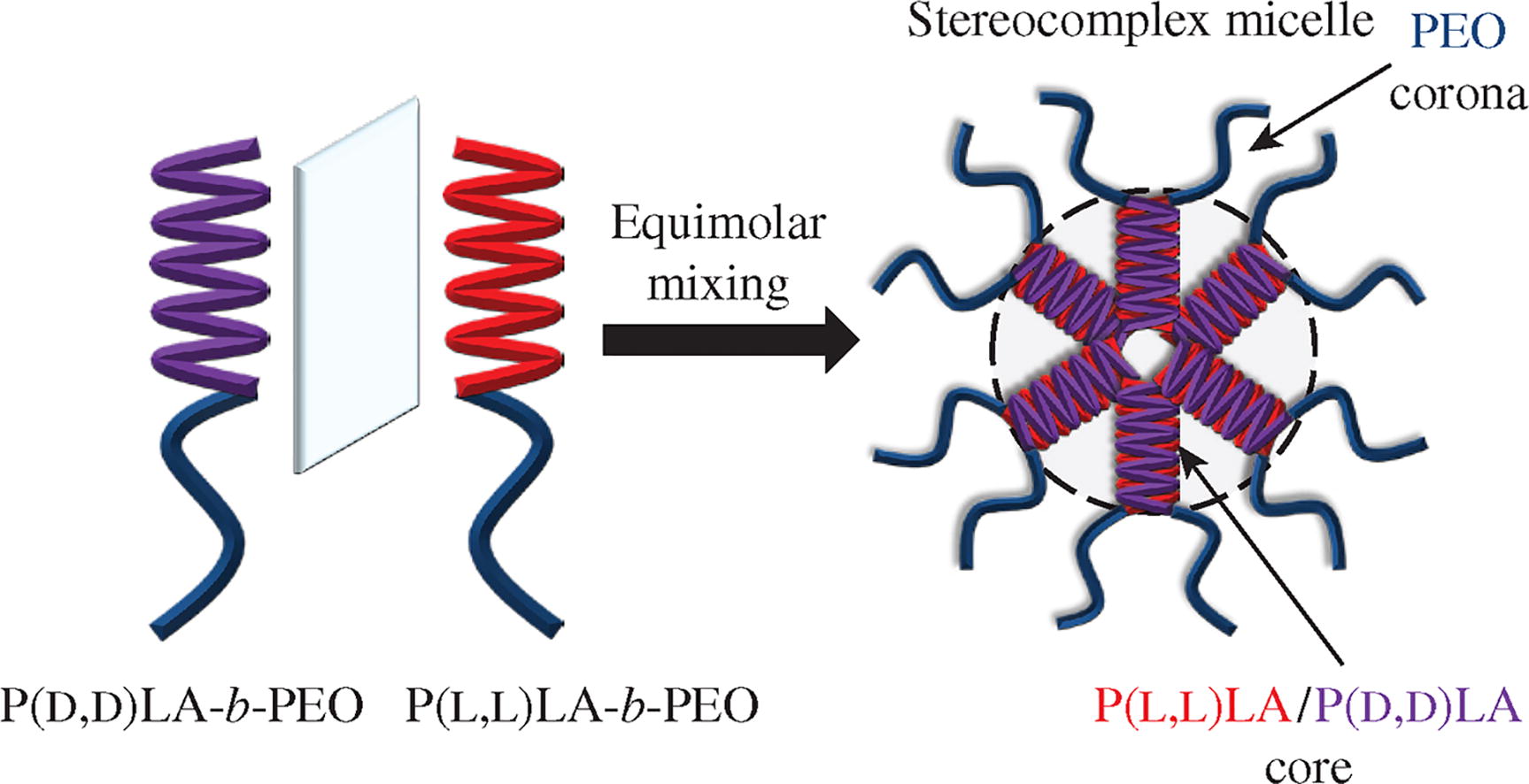 The effect of crystallization of a hydrophobic poly(lactide) block on the self-organization of biocompatible and biodegradable amphiphilic poly(lactide)-block-poly(ethylene oxide) (PLA-b-PEO) copolymers in a dilute aqueous solution has been investigated. It was demonstrated that the co-crystallization of poly(L,L-lactide) [P(L,L)LA] and poly(d,d-lactide) [P(d,d)LA] chains under equimolar mixing of P(L,L)LA46-b-PEO113 and P(d,d)LA56-b-PEO113 copolymers resulted in the formation of stable and spontaneously water-redispersible stereocomplex micelles with semicrystalline P(L,L)LA/P(d,d)LA cores. It was shown that the P(L,L)LA46 / P(d,d)LA56-b-PEO113 stereo-complex micelles produced by dialysis can be potential vehicles for the anticancer agent oxaliplatin