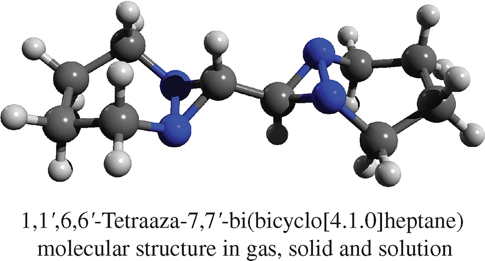 The equilibrium molecular structure of 1,1\textit{'},6,6\textit{'}-tetraaza-7,7\textit{'}-bi(bicyclo[4.1.0]heptane) in the gas phase has been determined from the data of the gas phase electron diffraction method using quantum chemical calculations up to the RI-MP2/def2-QZVPP level of theory. Structure studies were also carried out in $\mathrm{CDCl_3}$ solution using 1D and 2D $\mathrm{^{1}H}$ and $\mathrm{^{13}C}$ NMR spectroscopy and in the solid state using X-ray diffraction analysis. In the gas phase, three conformers of the molecule have been identified, while only one conformer is present in the $\mathrm{CDCl_3}$ solution and in the solid state, in which the substance crystallizes in space group $P\overline{1}$.