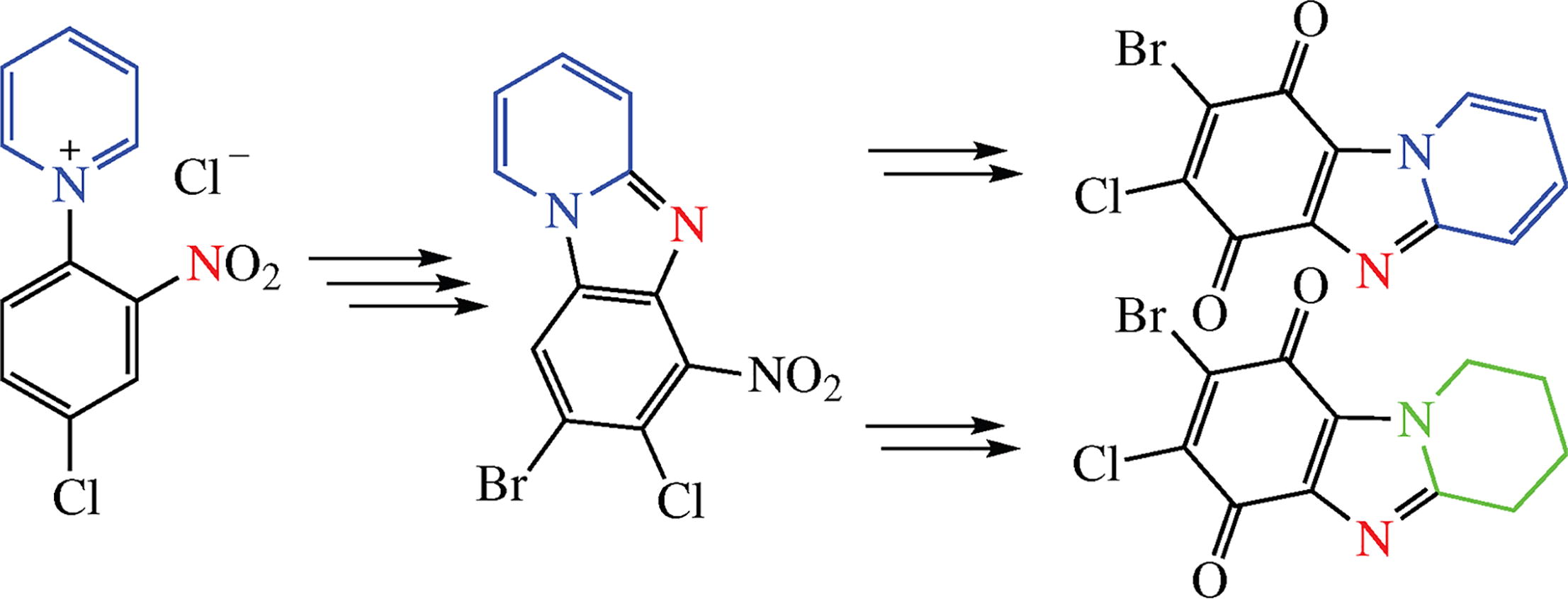 An efficient synthesis of 8-bromo-7-chloropyrido[1,2-a]-benzimidazole-6,9-dione and its 1,2,3,4-tetrahydro analogue from N-(4-chloro-2-nitrophenyl)pyridinium chloride has been accomplished. The study for antitumour activity against cancer cell lines such as A549, SH-SY5Y, Hep-2, HeLa and MCF-7 revealed that the cytotoxic effect of the compounds obtained was several times higher than that of Mitomycin C.