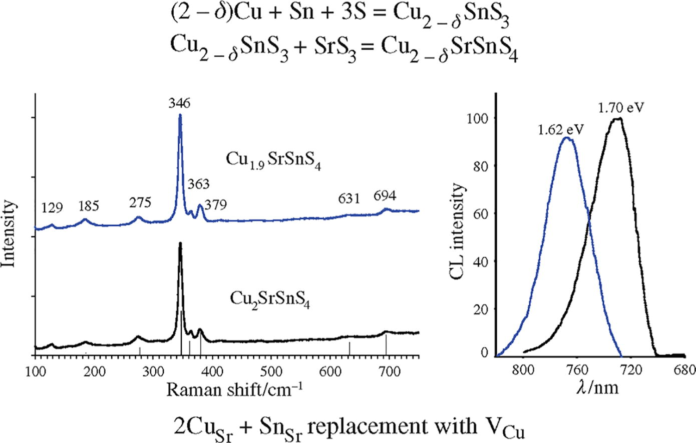 The polycrystalline samples of Cu2 - δSrSnS4 with a trigonal structure were prepared by solid-phase ampoule synthesis with a long annealing time (1944 h), and their crystal lattice parameters were refined and Raman spectra were obtained. For the first time, the effect of defect structure on the lifetimes of photogenerated current carriers in the polycrystalline powders was examined by combining time-resolved microwave photoconductivity and cathodoluminescence methods. A significant increase in the lifetimes during the conversion of Cu2SrSnS4 into Cu1.9SrSnS4 was found, which was probably due to changes in the defect structure.