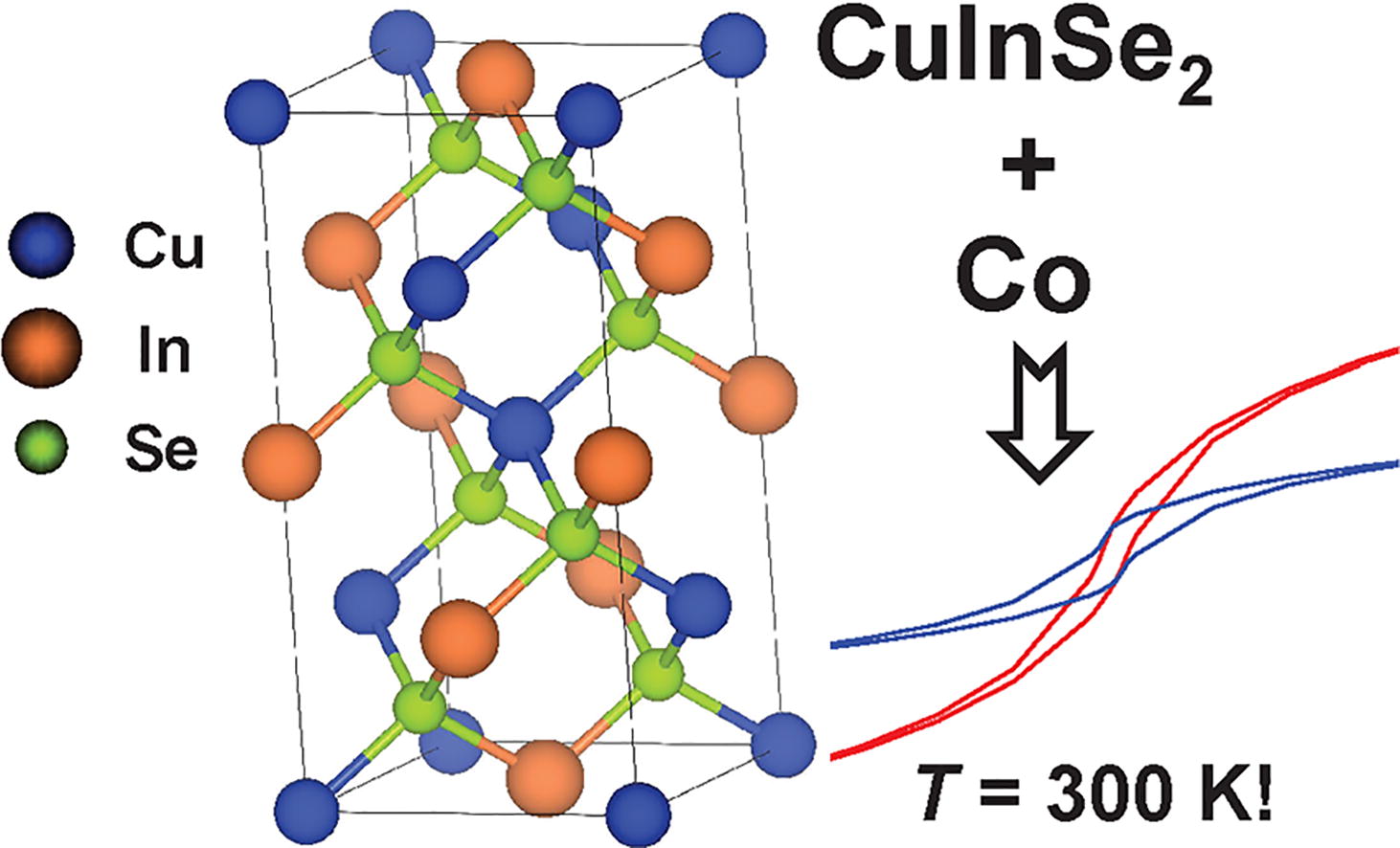 Synthetic conditions for cobalt-doped chalcopyrites Cu1 - x/2In1 - x/2CoxSe2 were modified by adding a stage of fast temperature quenching from 1000 °C to cause significant ferromagnetism. Ferromagnetism persisted even at room temperature, and it was characterized by coercivity up to 140 Oe.
