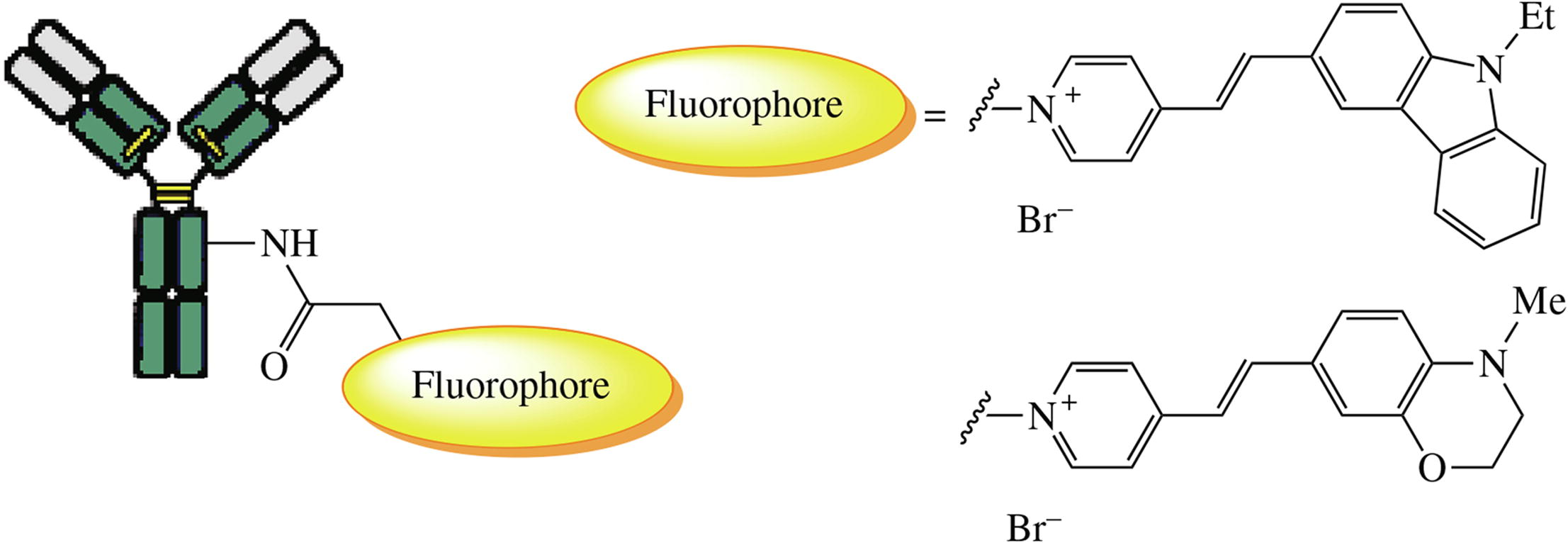 Two new styryl-type dyes modified with the succinimide ester group were prepared for conjugation with antibodies. The optical characteristics of the obtained compounds in different solvents were studied, and the solvatochromic properties of these dyes were revealed. The applicability of the dyes as protein labels was demonstrated in cyto-fluorometry and fluorescence microscopy.
