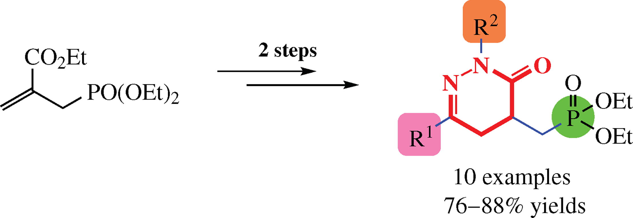 An expedient access to novel 4-phosphonomethyl-containing 2,6-disubstituted 4,5-dihydropyridazin-3(2H)-ones involves the reaction of β-phosphono γ'-keto ester intermediates with hydrazines. The construction of the pyridazinone ring allows the installation of various substituents at the positions 2 and 6 as well as a valuable 4-positioned phosphonomethyl fragment.
