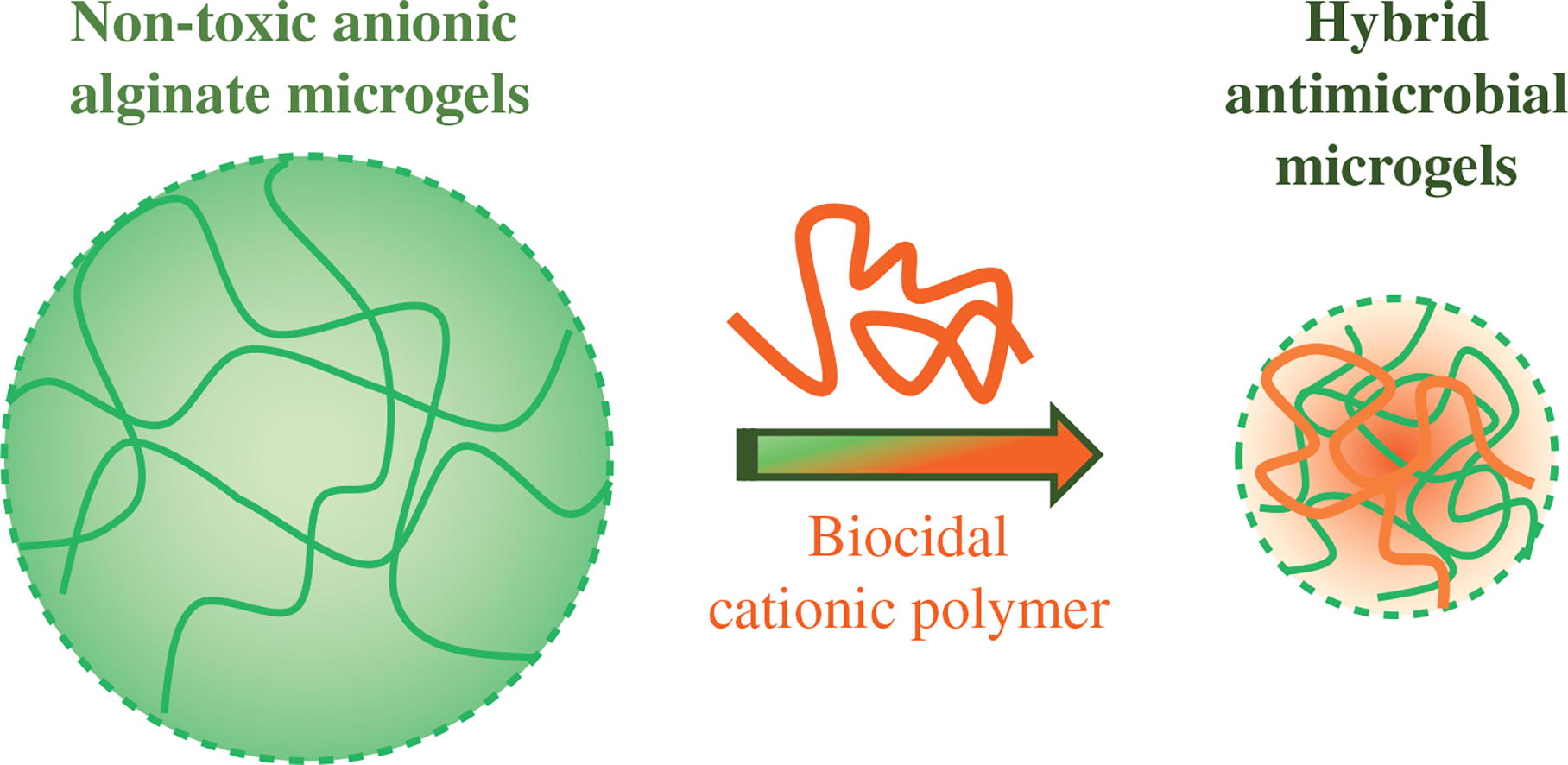 Negatively charged polycomplexes have been prepared by electrostatic complexation of synthetic cationic poly(diallyldimethylammonium chloride) with excess anionic sodium alginate. These polycomplexes exhibit pronounced antimicrobial activity due to the biodegradation of the alginate matrix and the release of the biocidal polycation. The results obtained are promising for the development of simultaneously attractive and toxic polymer constructs capable of destroying microorganisms.