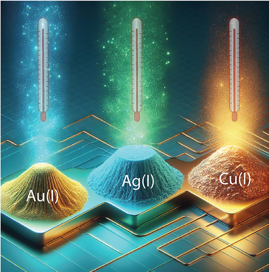 Transition metal complexes of copper subgroup metals are actively studied objects for temperature sensors. Their luminescence arising from the 3ILCT, 3MLCT or 3CC excited states is characterized by emission in all ranges of visible spectra and high quantum yields. Due to the ability of the complexes to emit in a dual band mode, these complexes are attractive for the temperature sensing in the ratiometric mode. Dual emission of complexes is usually susceptible of the irregular changes in intensity of two emission bands during the temperature changes. This is an important and necessary property for the utilization of phosphors as ratiometric thermometers. The structures and emission properties of gold(i) and copper(i) complexes are considered with the aim to demonstrate the possibility to apply such complexes as ratiometric molecular luminescent thermometers for the remote control of the object’s temperature.