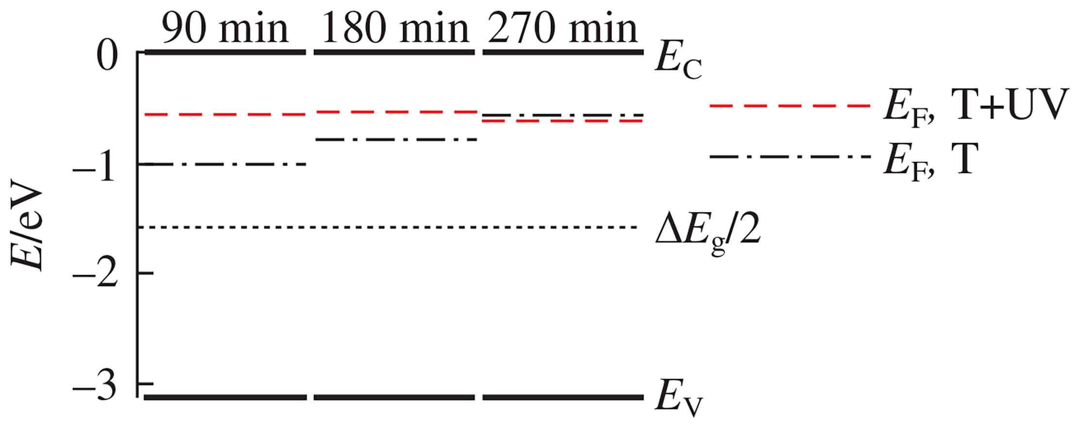 The effect of UV irradiation on sol-gel prepared ZnO films subjected to mild thermal annealing was investigated, with special attention to their structural and surface properties. Sol-gel processes, including a high-temperature annealing stage, have been adapted to the requirements of flexible electronics for in situ synthesis of semiconductor ZnO films on polymer substrates at lower temperatures due to UV irradiation. Application of UV radiation with emission peaks at 185 and 254 nm to films annealed at 180 °C made it possible to obtain ZnO films with Zn/O ratios of ca. 1, which cannot be achieved by heat treatment alone.