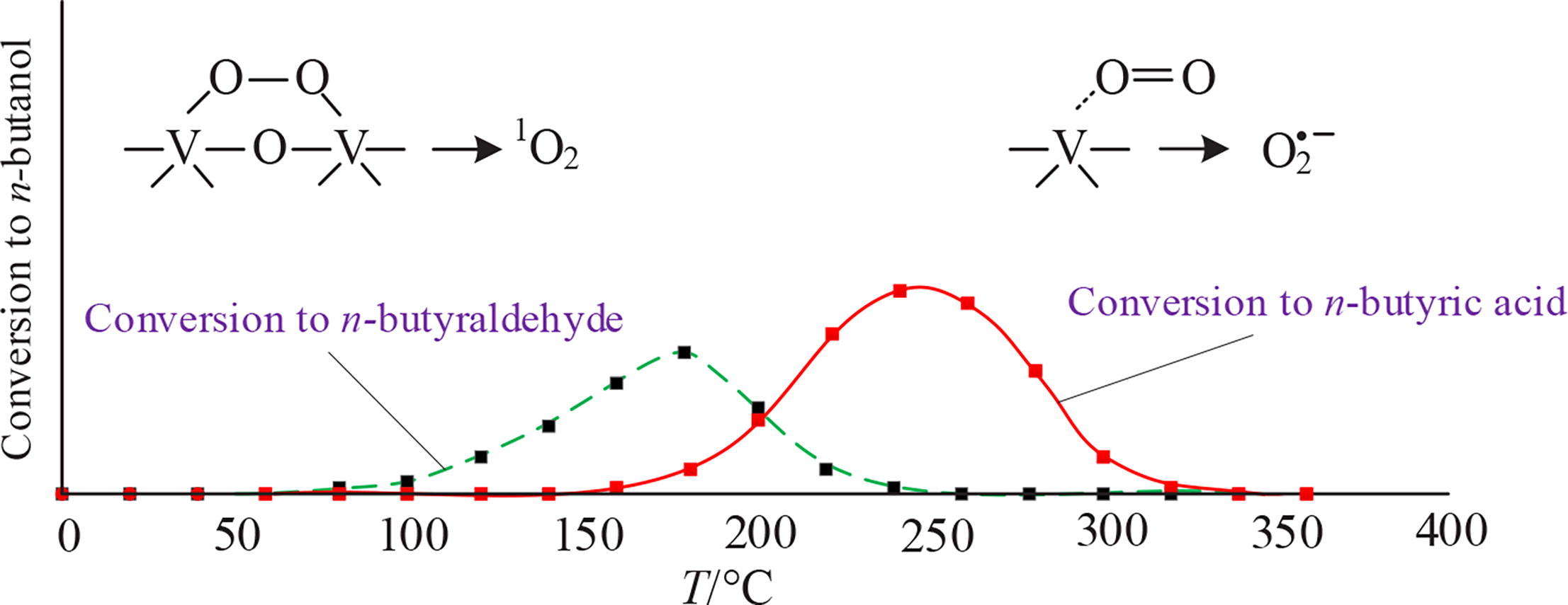 Singlet oxygen emission and peroxide generation at the surface of molybdenum-vanadium oxides evidenced that the catalytic activity of a MoO3:V2O5 mixed oxide at 70-175 °C was governed by the formation of peroxo groups in the interaction of molecular oxygen with adjacent Viv surface centers; the thermolysis of these groups yielded singlet oxygen capable of oxidizing selectively alcohols to aldehydes.