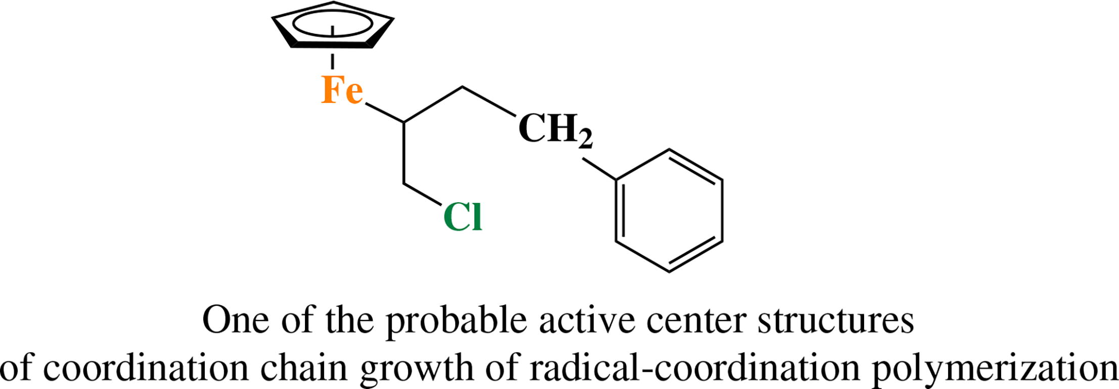 Chromatography-mass spectrometry of samples representing the interaction products of ferrocene, radical initiator and monomer taken in the molar ratio of 1:2:10 in toluene solution was used for experimental detection of products indicating the structure and mechanism of formation of metal complex active centers of radical-coordination polymerization. Structures similar to those proposed by the quantum-chemical modeling were demonstrated to be formed with the participation of secondary radicals.